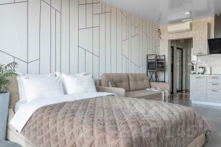Просторная спальная зона с качественной кроватью и функциональным диваном гармонично сочетается с эргономичной кухней, где обеденная группа становится естественным центром притяжения. Система теплых полов и климат-контроль обеспечивают комфорт в любое время года, а современная медиасистема дополняет атмосферу современного жилья.