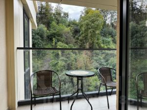 Большая просторная терраса с видом в нацпарк, так же есть небольшой балкон в спальне, оборудованный сушилкой для белья. 2 кондиционера, встраиваемая техника для кухни.