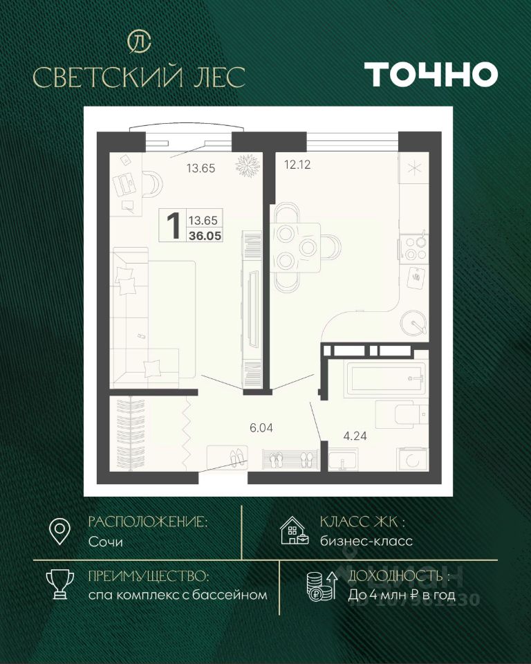 Общая площадь36,05 м²