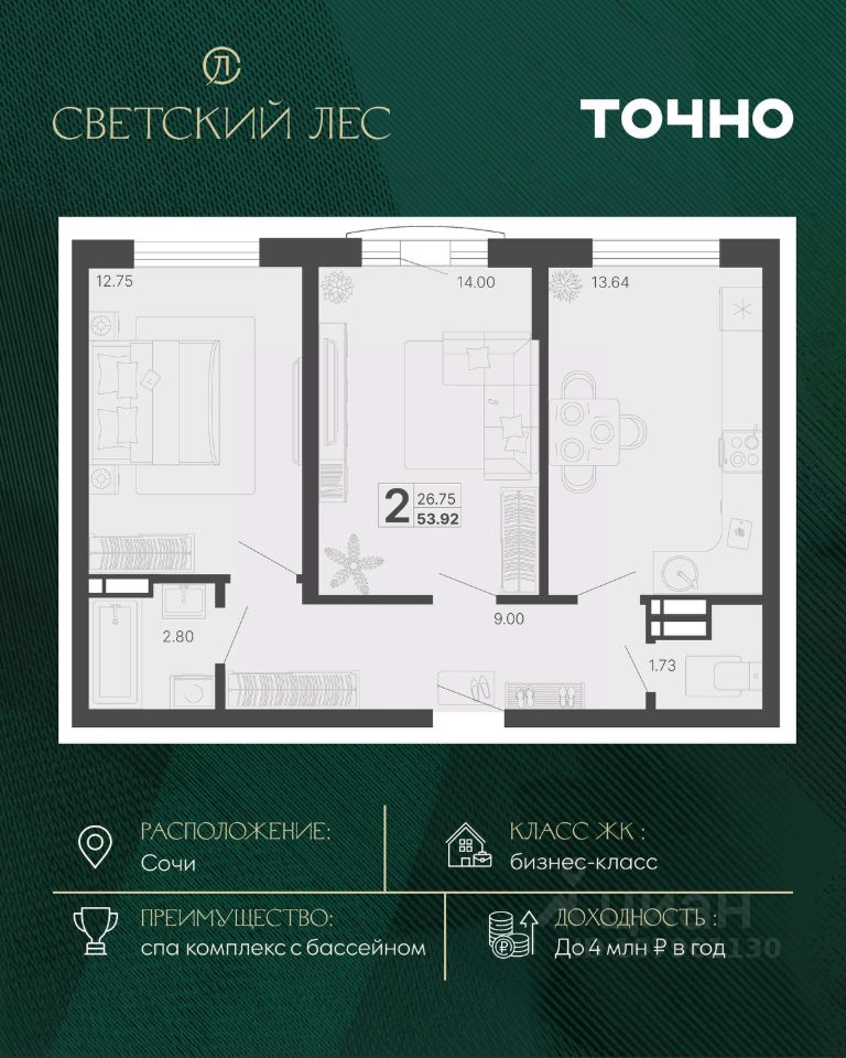 Светский лес - эксклюзивный жилой проект бизнес-класса в Сочи. Это остров цивилизации и технологий в окружении дикой природы национального парка с богатой инфраструктурой, наполненной различными сценариями премиального отдыха и жизни. Общественное пространство ЖК включает в себя прогулочные зоны, СПА комплекс с круглогодичным бассейном, детские и спортивные площадки, велодорожки, собственную набережную реки Сочи, торговую галерею с супермаркетами и ресторанами, а также инновационную школу и детский сад.