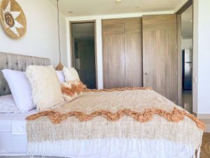 Квартира хорошая, просторная: есть гостиная с кухней и отдельная спальня. Вся мебель и техника остаются, холодильник, плита, стиралка, кондиционеры — всё ваше. Заезжайте и живите.