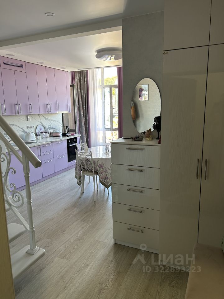 Продается светлая и просторная двухуровневая трехкомнатная квартира в современном 10-ти этажном доме 2015 года постройки, на берегу моря, в 50 метрах от пляжа .Общая площадь — 64 кв.м, два совмещенных санузла, лоджия и кладовая. Квартира расположена на 10 этаже .на первом этаже - студия оборудованная современной техникой, панорамные окна с видом на горы, лоджия, совмещенный санузел; на втором этаже- две изолированные спальни, совмещенный санузел и кладовая.