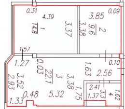 --Расположение комнат: Комната 14.8м2, спальня 9.6м2, кухня 19м2, прихожая 2.5м2, совмещенный санузел 4.5.