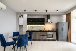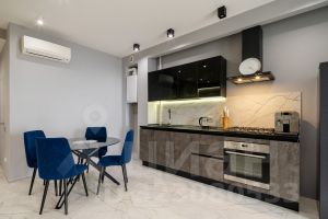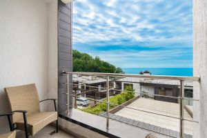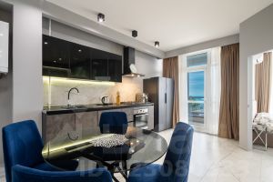 Просторная кухня объединённая с гостиной, где есть диван, телевизор и вся необходимая бытовая техника. Заезжай и живи. А так же есть балкон, пять квадратных метров, с которого открывается великолепнейший вид на морскую гладь и субтропическую зелень.