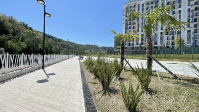 Ровное место, широкие проезды и расстояния между домами, огромная внутренняя просторная территория, что редкость для Сочи.