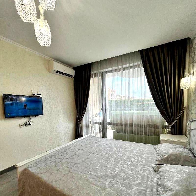 Продаю уютную квартиру в сердце Имеретинского курорта с видом на море. В квартире современный ремонт, на полу мраморная плитка, стены покрашены венецианской штукатуркой, окна "Knauf". Вся мебель и техника остается в подарок. Кухня и кровать из деревянного массива. Есть встроенная посудомоечная машина, установлен кондиционер и стиральная машина. Красивый вид на море и на бассейн. Бассейн круглогодичный с подогревом. Закрытая придомовая территория. Дом находится на первой линии от моря. На первом этаже рестораны и кофейни. В шаговой доступности Олимпийский парк, ледовая арена, стадион Фишт и знаменитый Сочи Парк.