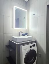 Санузел стиль хай-тек, плитка Kerama Marazzi, поддон ручной работы, керамогранитный пол