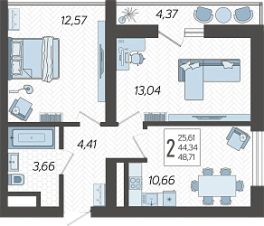Продаётся 2-комнатная квартира в сданном доме (Корпус 13), срок сдачи: II-кв. 2024, общей площадью 48.71 кв.м., на 7 этаже. Жилой комлекс "Кислород" представляет комплексную застройку, состоящую из 20-ти этажных монолитных домов.