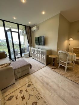 — Просторная, светлая, с панорамными окнами и балконом — вид на море, горы, стадион Фишт и дендрарий. Окна выходят на юго-восток!