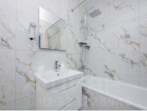 • В апартаменте есть все необходимое для комфортного проживания стильная и удобная ванная комната с феном, средства гигиены, которые предоставляет отель, в самом номере есть холодильник, чайник, микроволновая печь, разнообразная посуда, чай и кофе.