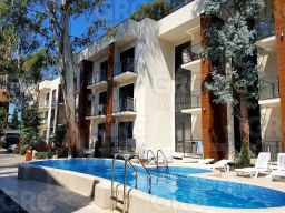 Общая площадь к продаже 25 м. кв. Апартаменты студийного типа с балконом! В современном стильном решении, мебелью и техникой. Рядом бассейн. Вид на парковую территорию.