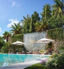 Прекрасный двор с водопадом и подогреваемым бассейном