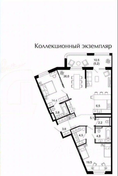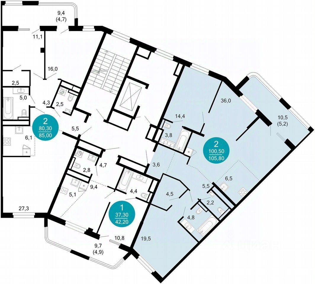 Коллекционный лот 21 - элитная резиденция 105,8 кв.м с двумя мастер-спальнями и расширенными террасами.