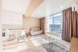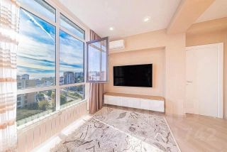 В апартаменте сделан дизайнерский ремонт с применением высококачественных отделочных материалов. Тёплый пол, паркет. Установлена новая мебель и бытовая техника. Готова для сдачи или проживания. Отличный панорамный вид на море.