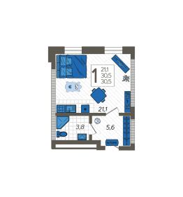 Продаётся студия в сданном доме (Литер 5), срок сдачи: III-кв. 2024, общей площадью 30.5 кв.м., на 1 этаже. Жилой комплекс "Летний" расположен в ущелье реки Кудепста.