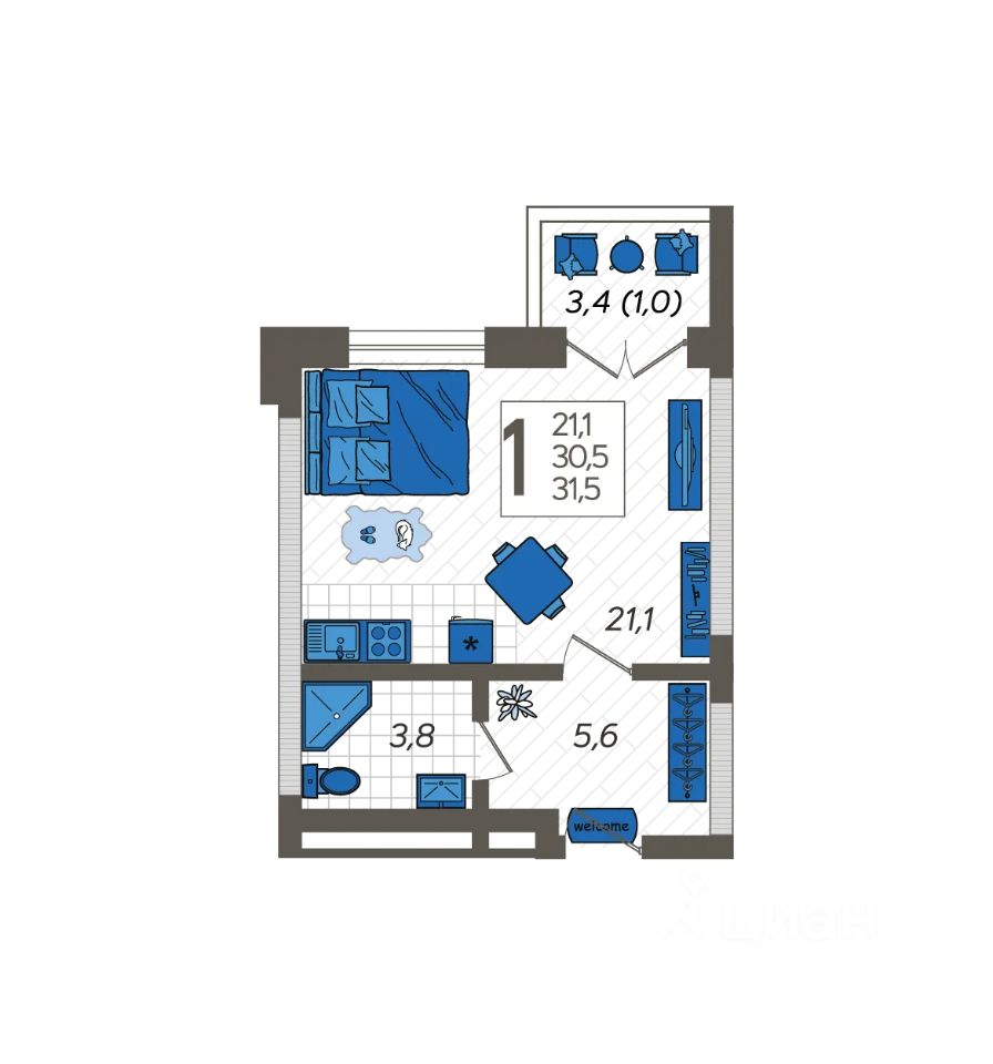Продаётся студия в сданном доме (Литер 5), срок сдачи: III-кв. 2024, общей площадью 31.66 кв.м., на 12 этаже. Жилой комплекс "Летний" расположен в ущелье реки Кудепста.