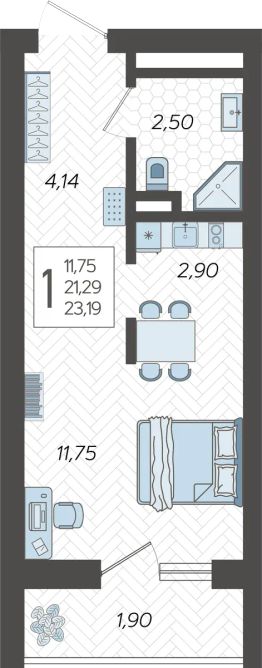 Застройщиком спроектированы одно-, двух- и трехкомнатные квартиры.