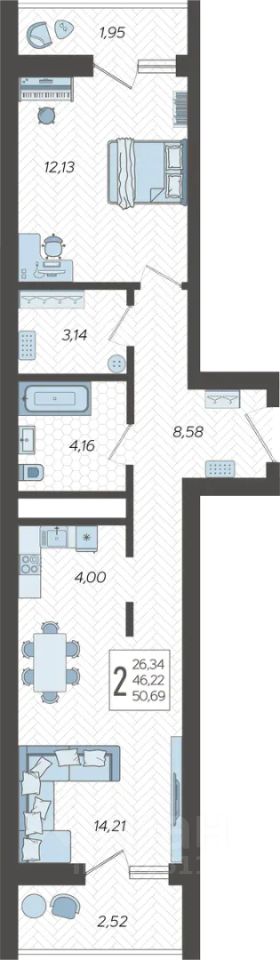 Продаётся 2-комнатная квартира в сданном доме (Корпус 11), срок сдачи: I-кв. 2024, общей площадью 51.7 кв.м., на 13 этаже. Жилой комлекс "Кислород" представляет комплексную застройку, состоящую из 20-ти этажных монолитных домов.