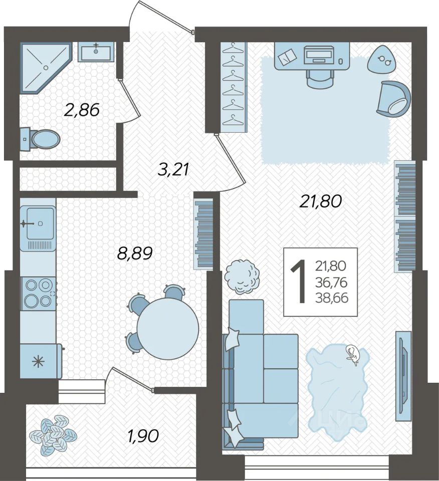 Застройщиком спроектированы одно-, двух- и трехкомнатные квартиры.