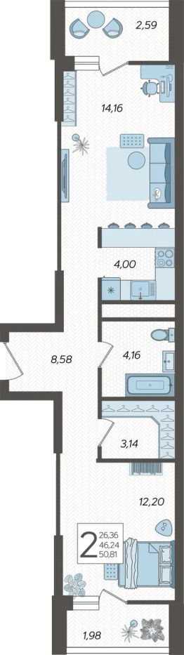 Застройщиком спроектированы одно-, двух- и трехкомнатные квартиры.