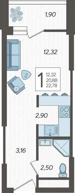 Застройщиком спроектированы одно-, двух- и трехкомнатные квартиры.