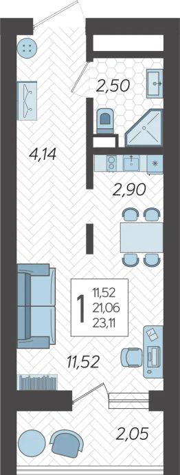 Застройщиком спроектированы одно-, двух- и трехкомнатные квартиры.