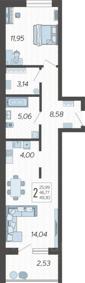Продаётся 2-комнатная квартира в строящемся доме (Корпус 15), срок сдачи: I-кв. 2026, общей площадью 49.3 кв.м., на 1 этаже. Жилой комлекс "Кислород" представляет комплексную застройку, состоящую из 20-ти этажных монолитных домов.