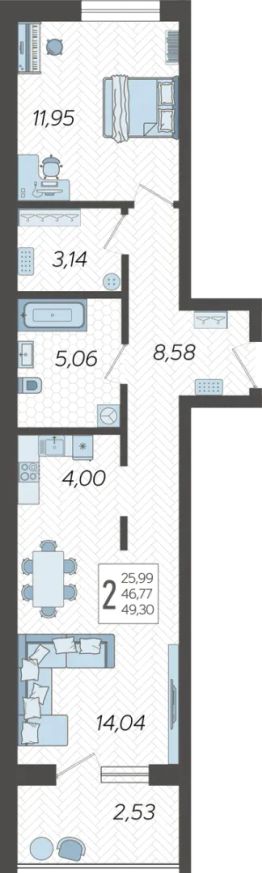 Застройщиком спроектированы одно-, двух- и трехкомнатные квартиры.