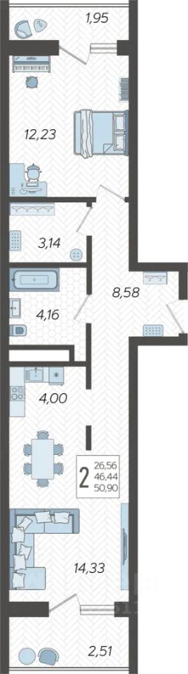 Продаётся 2-комнатная квартира в строящемся доме (Корпус 15), срок сдачи: II-кв. 2026, общей площадью 50.9 кв.м., на 2 этаже. Жилой комлекс "Кислород" представляет комплексную застройку, состоящую из 20-ти этажных монолитных домов.