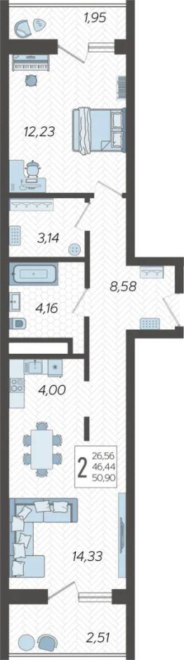 Застройщиком спроектированы одно-, двух- и трехкомнатные квартиры.