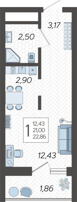 Застройщиком спроектированы одно-, двух- и трехкомнатные квартиры.