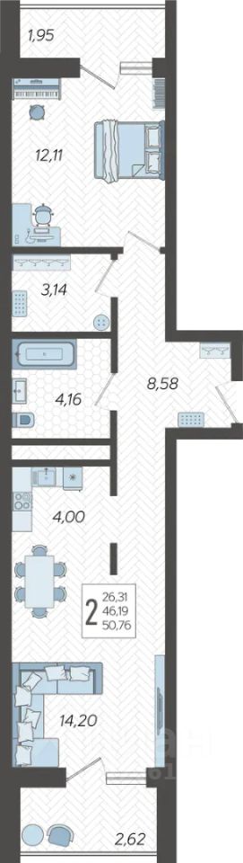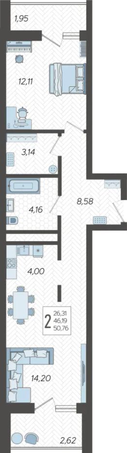 Продаётся 2-комнатная квартира в сданном доме (Корпус 8), срок сдачи: IV-кв. 2023, общей площадью 51.9 кв.м., на 15 этаже. Жилой комлекс "Кислород" представляет комплексную застройку, состоящую из 20-ти этажных монолитных домов.