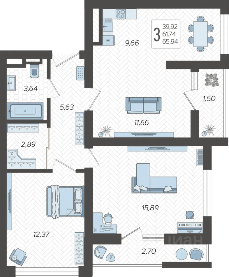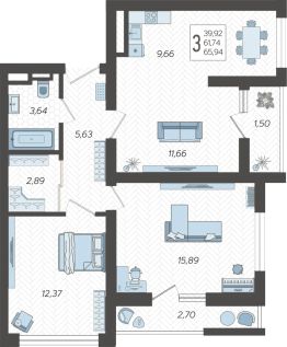 Застройщиком спроектированы одно-, двух- и трехкомнатные квартиры.
