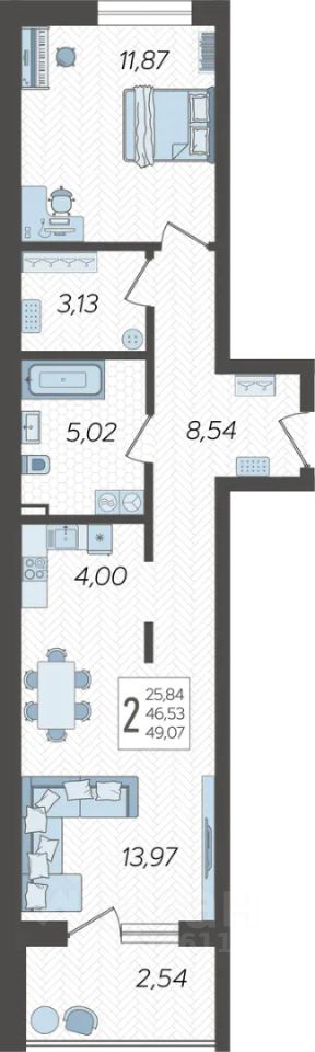 Застройщиком спроектированы одно-, двух- и трехкомнатные квартиры.