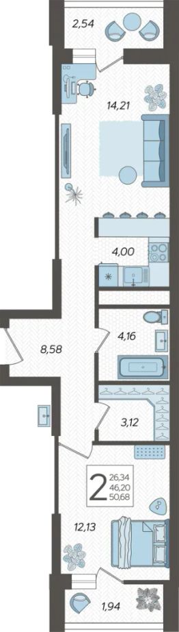 Застройщиком спроектированы одно-, двух- и трехкомнатные квартиры.