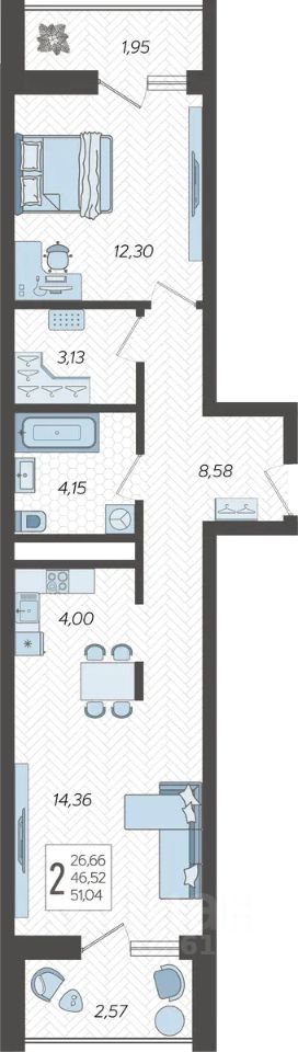 Продаётся 2-комнатная квартира в сданном доме (Корпус 12), срок сдачи: II-кв. 2024, общей площадью 51.9 кв.м., на 11 этаже. Жилой комлекс "Кислород" представляет комплексную застройку, состоящую из 20-ти этажных монолитных домов.