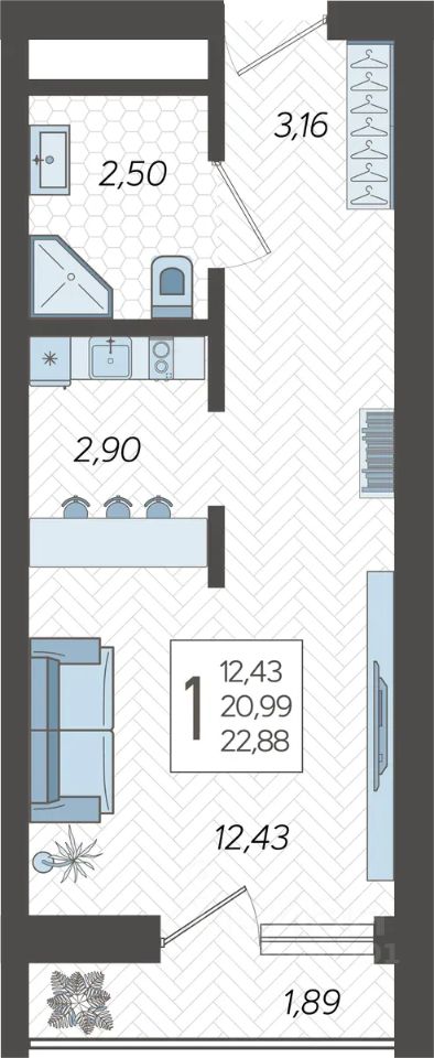 Продаётся студия в сданном доме (Корпус 12), срок сдачи: II-кв. 2024, общей площадью 23.3 кв.м., на 13 этаже. Жилой комлекс "Кислород" представляет комплексную застройку, состоящую из 20-ти этажных монолитных домов.