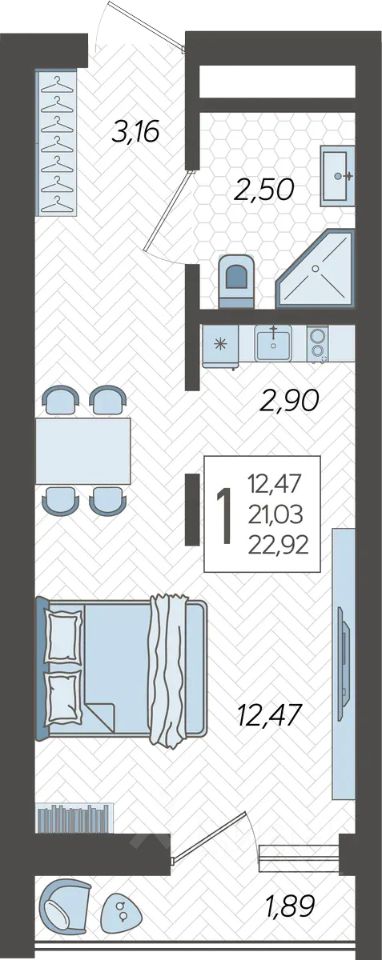 Застройщиком спроектированы одно-, двух- и трехкомнатные квартиры.