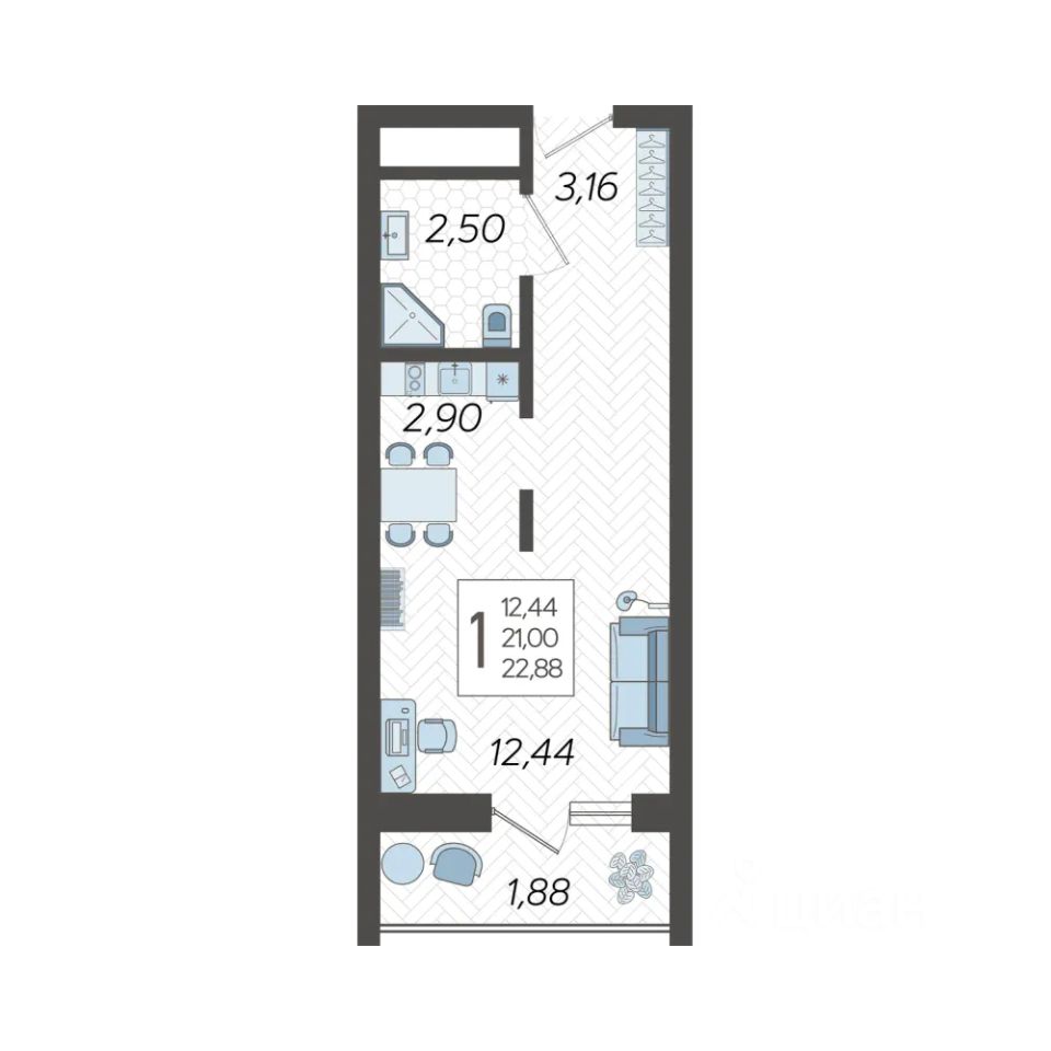Продаётся студия в строящемся доме (Корпус 14), срок сдачи: IV-кв. 2025, общей площадью 22.88 кв.м., на 4 этаже. Жилой комлекс "Кислород" представляет комплексную застройку, состоящую из 20-ти этажных монолитных домов.