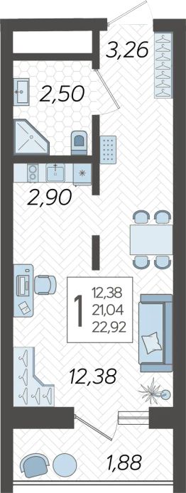 Застройщиком спроектированы одно-, двух- и трехкомнатные квартиры.