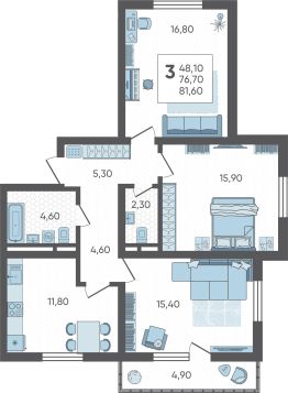 Продаётся 3-комнатная квартира в строящемся доме (Литер 1), срок сдачи: III-кв. 2026, общей площадью 81.6 кв.м., на 5 этаже. "Горный квартал" стирает границы между городом и природой. Несмотря на свое месторасположение и великолепие окружающих его пейзажей, квартиры наполнены привычным уютом. Вниз на лифте можно спуститься к магазинам, что займут первые этажи, поблизости находятся школы, детские сады, поликлиника, автобусные остановки.