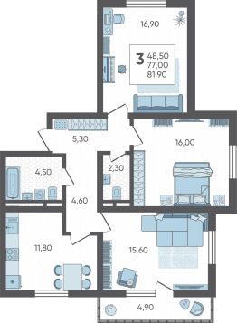 Продаётся 3-комнатная квартира в строящемся доме (Литер 1), срок сдачи: III-кв. 2026, общей площадью 81.9 кв.м., на 10 этаже. "Горный квартал" стирает границы между городом и природой. Несмотря на свое месторасположение и великолепие окружающих его пейзажей, квартиры наполнены привычным уютом. Вниз на лифте можно спуститься к магазинам, что займут первые этажи, поблизости находятся школы, детские сады, поликлиника, автобусные остановки.