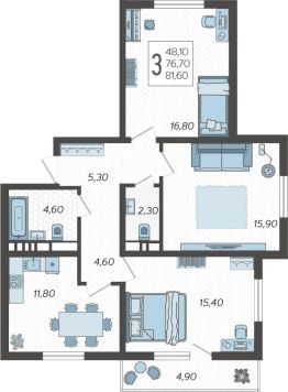 Продаётся 3-комнатная квартира в строящемся доме (Литер 2), срок сдачи: III-кв. 2026, общей площадью 81.6 кв.м., на 4 этаже. "Горный квартал" стирает границы между городом и природой. Несмотря на свое месторасположение и великолепие окружающих его пейзажей, квартиры наполнены привычным уютом. Вниз на лифте можно спуститься к магазинам, что займут первые этажи, поблизости находятся школы, детские сады, поликлиника, автобусные остановки.