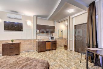 Студия площадью 32.7 м\кв, расположена на 2 этаже 4 этажного комплекса. Одной из важнейших особенностей данной студии является наличие отдельного входа с улицы. В студии выполнен евро ремонт из качественных материалов, установлены панорамные окна. Имеется все необходимое для комфортного проживания и отдыха: