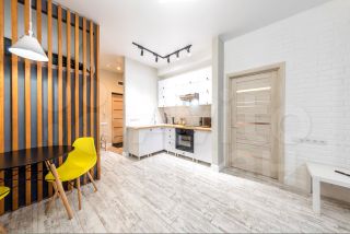 Квартира выполнена в дизайнерском стиле, который порадует самого взыскательного покупателя. Уютная кухня площадью 9 кв. м. станет отличным местом для семейных ужинов или встреч с друзьями. Просторная комната с окнами, выходящими во двор, обеспечит тишину и спокойствие. В квартире есть совмещенный санузел с современной сантехникой.