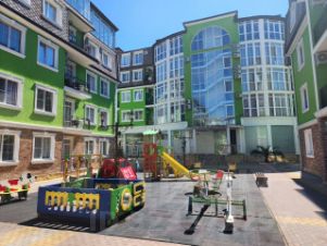 Территория комплекса, состоящего из 8 корпусов полностью огорожена, и охраняемая. Парковки для собственников внутри комплекса бесплатные. В одном шаге лучший пляж краснодарского края, с чистейшей водой и широкой полосой. Так же, совсем рядом, по равнине (что немаловажно), такие объекты как Олимпийский Парк, Сочи Парк, множество кафе и ресторанов а так же прогулочные и спортивных зоны. Все вышеперечисленное делает имеритинскую низменность лучшей туристической локацией Большого Сочи.