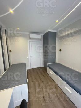 Распланирована на прихожую, санузел, три спальни, кухню-гостиную.