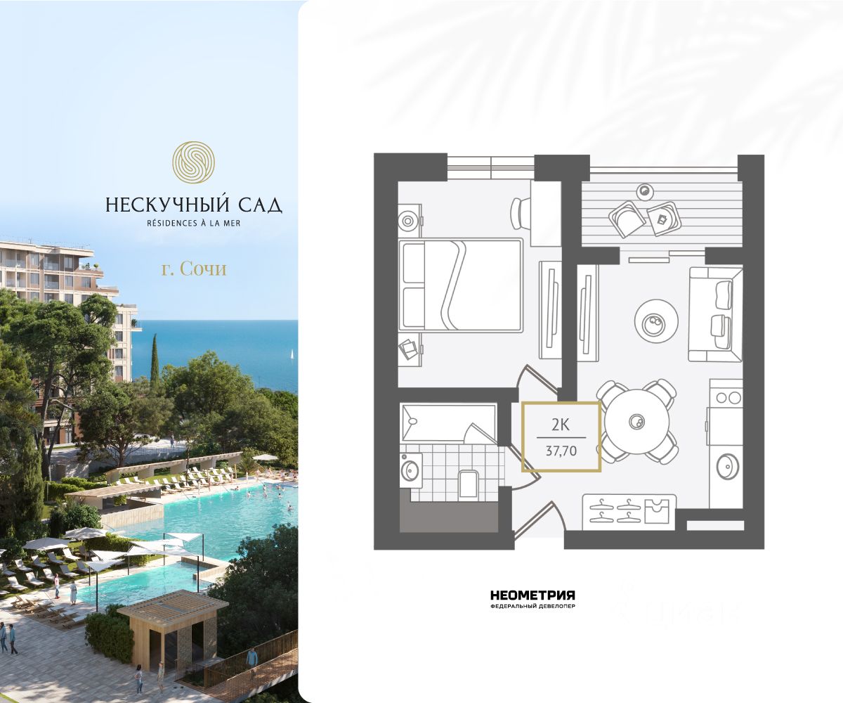 Нескучный сад Rsidences la mer — авторский курорт с атмосферой французской Ривьеры, где каждый день как увлекательное путешествие. Курортный комплекс Нескучный сад создан для тех, кто путешествует по миру в поисках идеального места, где можно замедлиться, ощутить жизнь всеми органами чувств, чувствовать заботу и премиальный сервис. Неометрия создала подобное пространство здесь — в сердце Сочи. Премиальный курорт имеет официальный статус пятизвездочного отеля, реализуется по ФЗ-214 с использованием эскроу-счетов. Состоит из многоуровневой приватной территории 4,5 га, пяти садов чувств, уникального парящего променада 1,3 га, ведущего к морю, и собственного концептуального пляжа. Камерная локация Курорт расположен в Адлерском районе Центрального Сочи, между морем и горами. Место выбрано не случайно и подчеркивает ценность замедления в центре динамичной жизни. Чтобы оградить вас от шума и суеты, Нескучный сад скрыт в объятиях реликтового парка. Находясь в сердце золотого треугольника Сочи - 10 минутах до международного аэропорта, 15 минутах до Олимпийского парка и 45 минутах до Горнолыжного курорта Роза Хутор и Красной Поляны, вы получаете долгожданную приватность и ощущение загородной жизни. Прогулка до собственного пляжа - 450 шагов незабываемых ощущений по уникальному парящему променаду между верхушек пицундских сосен и платанов. В вашем распоряжении инфраструктура собственного курорта Каждая деталь в Rsidences la mer продумана и настроена на волну удовольствий: пул концептуальных ресторанов, подогреваемые бассейны, два уровня wellness & SPA, детские плей хабы и развивающий центр, воркауты в окружении зелени и деловой-кластер делают Нескучный сад достойным выбором для самой взыскательной аудитории. Безукоризненный сервис пятизвездочного отеля Попадая в Нескучный сад, ощущаешь себя гостем фешенебельного отеля valet parking, cleaning Focus, деликатный консьерж-сервис освобождает от рутины, фрахтует яхты для морской прогулки, электронно регистрирует ваших гостей, рекомендует лучшие маршруты путешествий для знакомства с аутентичной культурой, локальной гастрономией, легендами и традициями Сочи, забронирует лучший столик в одном из ресторанов. Любимые блюда прямо в вашу резиденцию доставит flashbot робот. Личныи помощник предугадывает желания и заботится о том, чтобы вы отдыхали, а ваши активы росли.