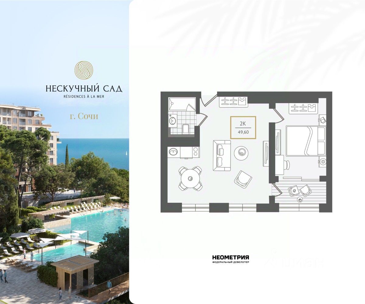 Нескучный сад Rsidences la mer — авторский курорт с атмосферой французской Ривьеры, где каждый день как увлекательное путешествие. Курортный комплекс Нескучный сад создан для тех, кто путешествует по миру в поисках идеального места, где можно замедлиться, ощутить жизнь всеми органами чувств, чувствовать заботу и премиальный сервис. Неометрия создала подобное пространство здесь — в сердце Сочи. Премиальный курорт имеет официальный статус пятизвездочного отеля, реализуется по ФЗ-214 с использованием эскроу-счетов. Состоит из многоуровневой приватной территории 4,5 га, пяти садов чувств, уникального парящего променада 1,3 га, ведущего к морю, и собственного концептуального пляжа. Камерная локация Курорт расположен в Адлерском районе Центрального Сочи, между морем и горами. Место выбрано не случайно и подчеркивает ценность замедления в центре динамичной жизни. Чтобы оградить вас от шума и суеты, Нескучный сад скрыт в объятиях реликтового парка. Находясь в сердце золотого треугольника Сочи - 10 минутах до международного аэропорта, 15 минутах до Олимпийского парка и 45 минутах до Горнолыжного курорта Роза Хутор и Красной Поляны, вы получаете долгожданную приватность и ощущение загородной жизни. Прогулка до собственного пляжа - 450 шагов незабываемых ощущений по уникальному парящему променаду между верхушек пицундских сосен и платанов. В вашем распоряжении инфраструктура собственного курорта Каждая деталь в Rsidences la mer продумана и настроена на волну удовольствий: пул концептуальных ресторанов, подогреваемые бассейны, два уровня wellness & SPA, детские плей хабы и развивающий центр, воркауты в окружении зелени и деловой-кластер делают Нескучный сад достойным выбором для самой взыскательной аудитории. Безукоризненный сервис пятизвездочного отеля Попадая в Нескучный сад, ощущаешь себя гостем фешенебельного отеля valet parking, cleaning Focus, деликатный консьерж-сервис освобождает от рутины, фрахтует яхты для морской прогулки, электронно регистрирует ваших гостей, рекомендует лучшие маршруты путешествий для знакомства с аутентичной культурой, локальной гастрономией, легендами и традициями Сочи, забронирует лучший столик в одном из ресторанов. Любимые блюда прямо в вашу резиденцию доставит flashbot робот. Личныи помощник предугадывает желания и заботится о том, чтобы вы отдыхали, а ваши активы росли.