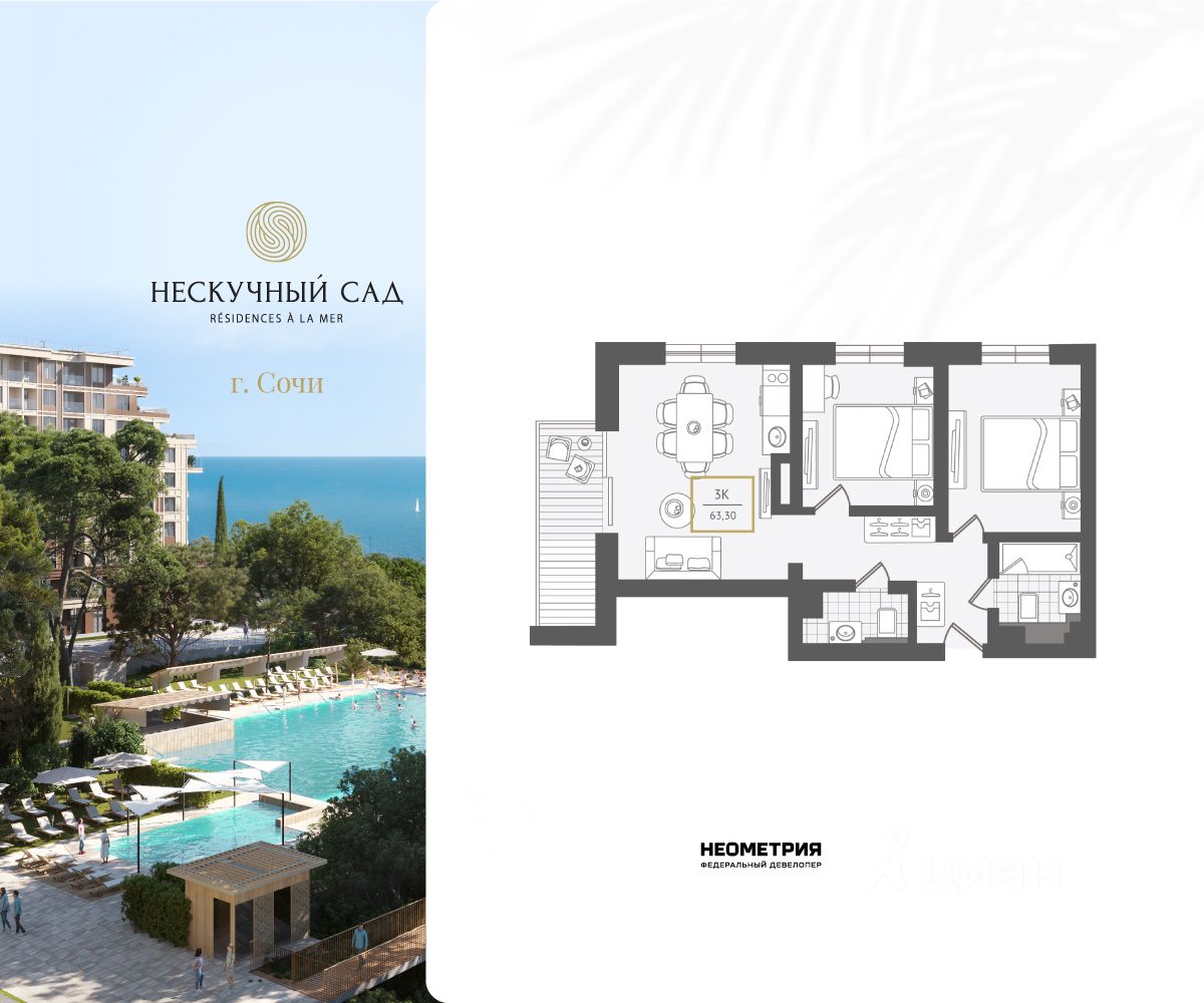 Нескучный сад Rsidences la mer — авторский курорт с атмосферой французской Ривьеры, где каждый день как увлекательное путешествие. Курортный комплекс Нескучный сад создан для тех, кто путешествует по миру в поисках идеального места, где можно замедлиться, ощутить жизнь всеми органами чувств, чувствовать заботу и премиальный сервис. Неометрия создала подобное пространство здесь — в сердце Сочи. Премиальный курорт имеет официальный статус пятизвездочного отеля, реализуется по ФЗ-214 с использованием эскроу-счетов. Состоит из многоуровневой приватной территории 4,5 га, пяти садов чувств, уникального парящего променада 1,3 га, ведущего к морю, и собственного концептуального пляжа. Камерная локация Курорт расположен в Адлерском районе Центрального Сочи, между морем и горами. Место выбрано не случайно и подчеркивает ценность замедления в центре динамичной жизни. Чтобы оградить вас от шума и суеты, Нескучный сад скрыт в объятиях реликтового парка. Находясь в сердце золотого треугольника Сочи - 10 минутах до международного аэропорта, 15 минутах до Олимпийского парка и 45 минутах до Горнолыжного курорта Роза Хутор и Красной Поляны, вы получаете долгожданную приватность и ощущение загородной жизни. Прогулка до собственного пляжа - 450 шагов незабываемых ощущений по уникальному парящему променаду между верхушек пицундских сосен и платанов. В вашем распоряжении инфраструктура собственного курорта Каждая деталь в Rsidences la mer продумана и настроена на волну удовольствий: пул концептуальных ресторанов, подогреваемые бассейны, два уровня wellness & SPA, детские плей хабы и развивающий центр, воркауты в окружении зелени и деловой-кластер делают Нескучный сад достойным выбором для самой взыскательной аудитории. Безукоризненный сервис пятизвездочного отеля Попадая в Нескучный сад, ощущаешь себя гостем фешенебельного отеля valet parking, cleaning Focus, деликатный консьерж-сервис освобождает от рутины, фрахтует яхты для морской прогулки, электронно регистрирует ваших гостей, рекомендует лучшие маршруты путешествий для знакомства с аутентичной культурой, локальной гастрономией, легендами и традициями Сочи, забронирует лучший столик в одном из ресторанов. Любимые блюда прямо в вашу резиденцию доставит flashbot робот. Личныи помощник предугадывает желания и заботится о том, чтобы вы отдыхали, а ваши активы росли.